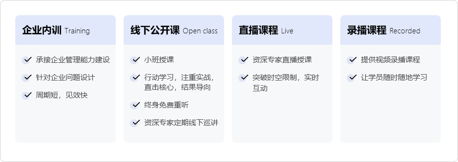 业务包含企业内训、线下公开课、录播、直播等多元形式。为会员免费提供在线刷题,同时开通CAQ/ASQ项目认证直播答疑。