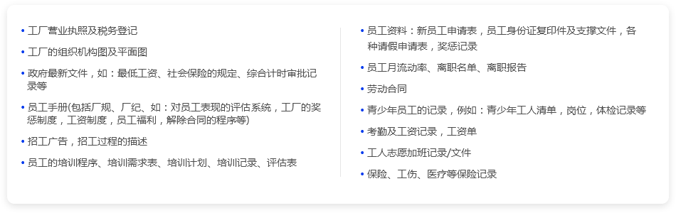 我们“量身定制"解决方案,提供全方位的咨询服务,从申请-预约审核-工厂整改-文件资料准备-员工培训-管理层培训-报告上传。