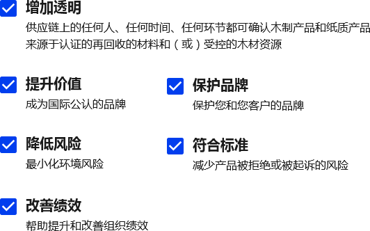 证明您的产品来源于认证的、良好管理的或其他受控的木材资源和再回收材料