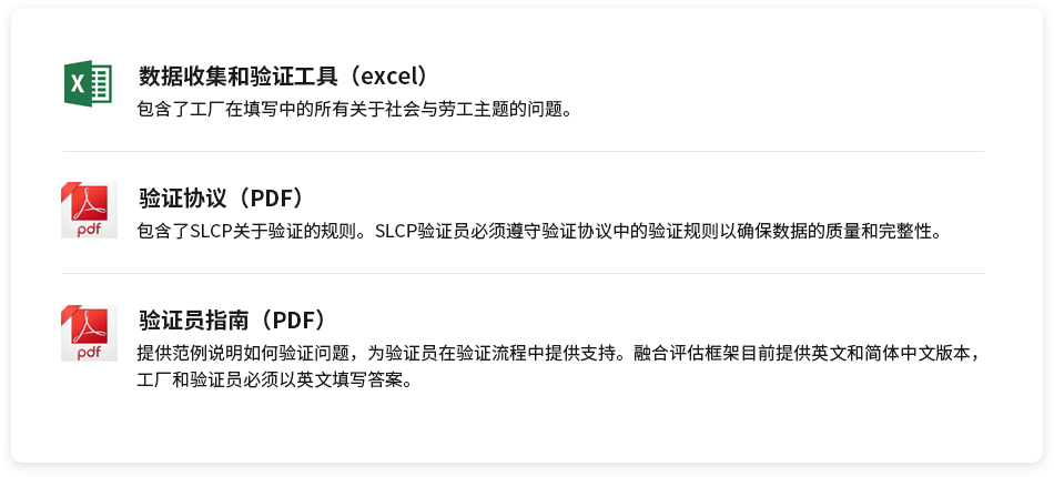 在SLCP的情形下开发,旨在支持利益相关方改善全球服装和鞋类供应链工作条件。由数据收集工具,验证协议和验证员指南组成。