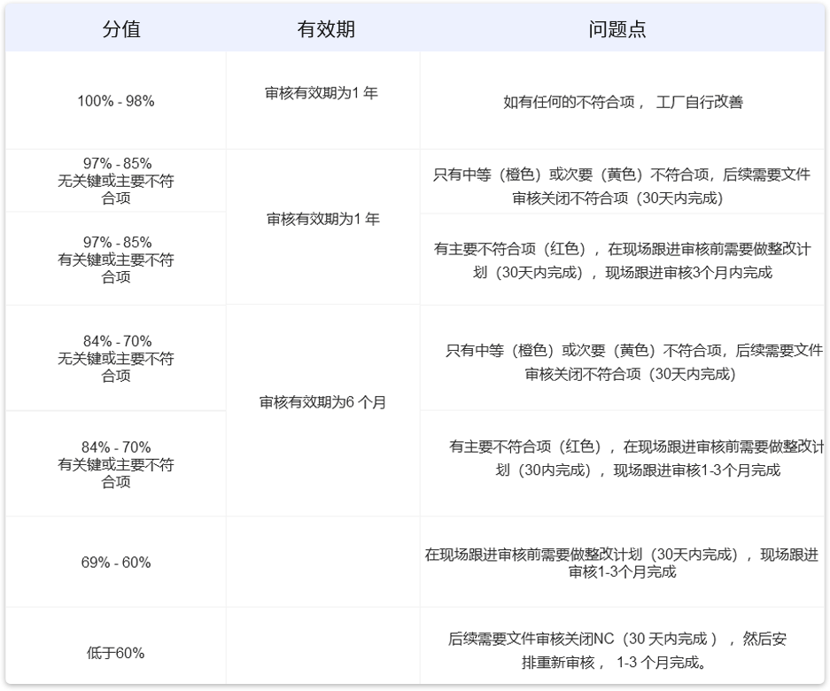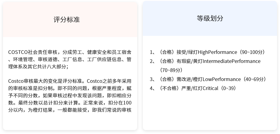 Costco验厂是Costco面向其供货商的一种符合性要求。Costco验厂的主要内容是检查关于从社会责任方面出发的综合管理体系的有效性。从用人、工资薪酬福利是否满足当地法律法规,员工的人权是否受到尊重,工作环境是否符合职业健康安全等方面着手,验厂方式,除了追溯,还有不同于标准体系认证的地方是进行员工抽样访谈。